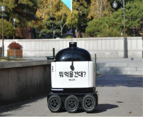 배달의민족 앱으로 주문하면 자율주행 배달 로봇이 위치·경로·물체 등을 인식해 가게에서 음식을 수령하고, 2층 이상 건물에는 엘리베이터를 타고 집 앞까지 배달한다.