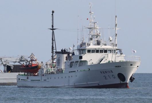 24일 오후 서해 소연평도 인근에서 해상에서 어업지도를 하다 실종된 뒤 북한의 총격을 받고 사망한 것으로 알려진 공무원이 타고있던 어업지도선 무궁화10호가 연평도 인근 해상에 떠있다. / 장련성 기자 |