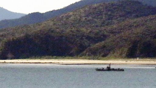 지난 21일 실종 뒤 22일 실종 공무원이 관측, 피격된 황해남도 옹진군 등산곶 해안 인근에 떠있는 북한 경비정의 모습. 뉴시스 |