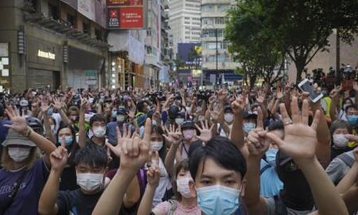 2019년 지난 7월1일 홍콩에서 국가보안법 제정에 반대하는 시위. AP=연합뉴스 |