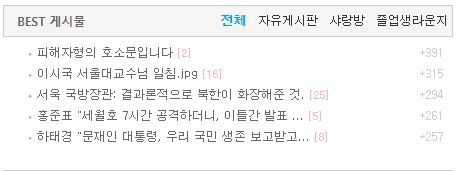 서울대학교 커뮤니티 '스누라이프' BEST 게시물에 실종 공무원 피격사건과 관련한 글들이 올라와 있다.(사진=스누라이프 캡처) |