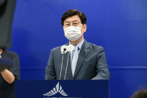 브리핑하는 이춘희 세종시장 |