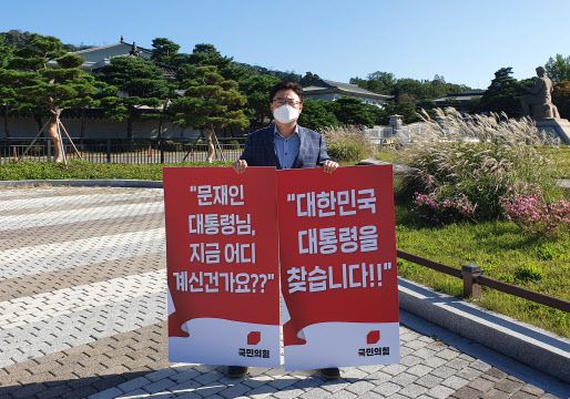 [이데일리 박태진 기자] 국민의힘이 27일 청와대 앞에서 서해상 실종 공무원의 피살 사건과 관련해 진상조사를 촉구하는 릴레이 1인 시위에 나섰다.