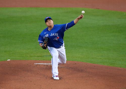 토론토 블루제이스 류현진이 25일(한국시간) 버팔로에서 열린 뉴욕양키스와의 경기에서 역투를 펼치고 있다. 뉴욕 | AFP연합뉴스 |