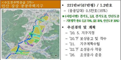 안산 장상지구는 221만3천㎡에 1만4천호 주택과 함께 신안산선 신설역을 중심으로 한 역세권 중심의 자족도시로 건설된다.