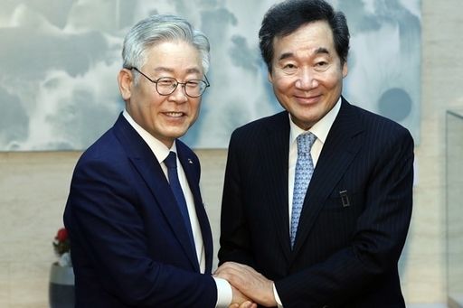 이재명 경기도지사(왼쪽)와 더불어민주당 이낙연 대표. 사진공동취재단 |