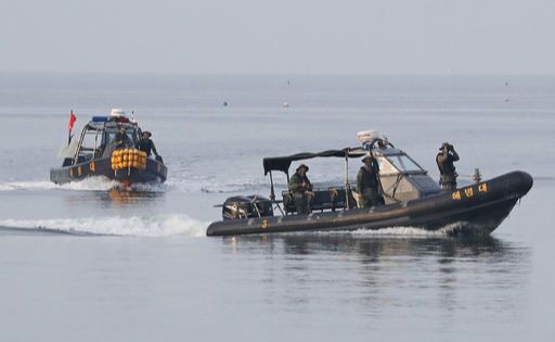 수색 한창 해양경찰청이 북한군의 총격으로 사망한 해양수산부 어업지도원 이모씨에 대한 중간 수사결과를 발표한 29일 오전 인천시 옹진군 대연평도 앞바다에서 해병대원들이 고속단정을 타고 해상 정찰 활동을 벌이고 있다. 연합뉴스 |