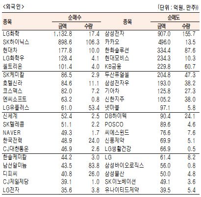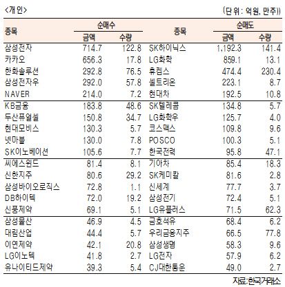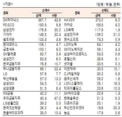 [표]유가증권 기관·외국인·개인 순매수·도 상위종목(9월 29일-최종치)