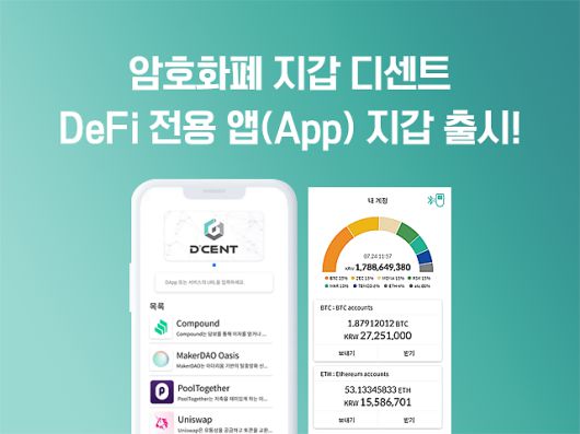디센트 앱 지갑 사용자들은 지갑 내 '탈중앙화앱(DApp·댑)' 채널에서 메이커다오 오아시스, 컴파운드, 풀투게더, 유니스왑, 오픈씨, 1인치 등의 서비스를 직접 연결해 스테이킹, 스왑, 이자농사 등 디파이 기반 거래를 할 수 있다.
