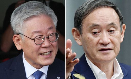 이재명 경기도지사(왼쪽), 스가 요시히데 일본 총리. 연합뉴스 |
