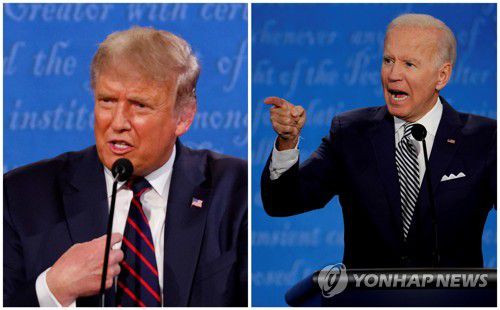 미국의 망조로 우려를 산 도널드 트럼프 대통령과 조 바이든 전 부통령의 첫 대선토론[로이터=연합뉴스 자료사진] |