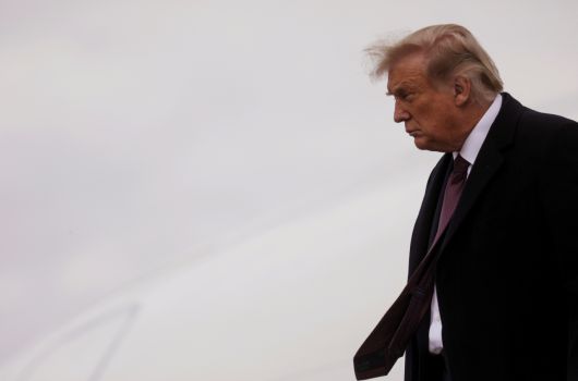 도널드 트럼프 미국 대통령이 1일(현지시간) 대선 유세를 위해 뉴저지주 모리스타운 공항에 도착해 전용기 에어포스원에서 내리고 있다. 연합뉴스 |