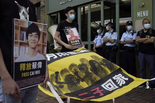 홍콩 민주진영 인사들이 중국의 국경절을 맞은 지난 1일 홍콩주재 중앙정부 연락판공실 주변에서 대만 밀항을 시도하다 중국 당국에 체포된 동료 12명의 석방을 요구하는 시위를 벌이고 있는 모습. 홍콩 AP=연합뉴스 |