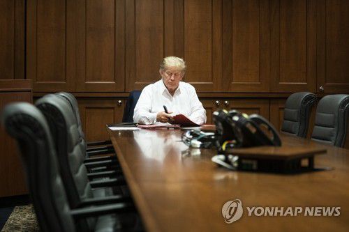 코로나19 입원 병원에서 집무 중인 트럼프 |