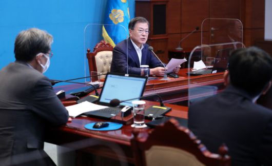 문재인 대통령이 5일 청와대에서 수석·보좌관 회의를 주재하고 있다. (사진=연합뉴스) |