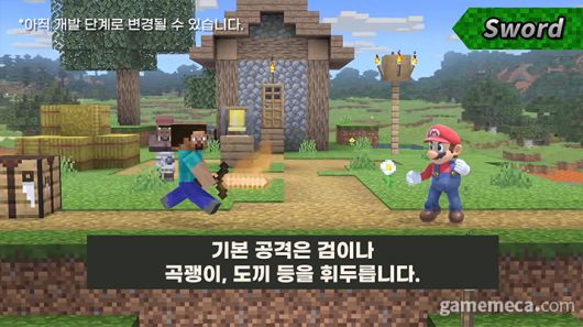 ▲ 슈퍼 스매시브라더스 얼티밋에서 마인크래프트 느낌이 확 느껴진다. (사진: 게임메카 촬영)
