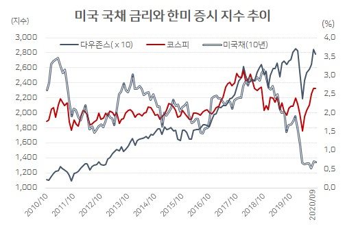 달러인덱스가 약세로 전환하고, 미국 국채 금리가 급 반등하고 있다. 미국의 추가 경기부양책 기대와, 중앙은행의 채권시장 개입 가능성을 반영한 결과로 보인다. 경기부양책이 펼쳐지면 실물경제에 달러가 투입된다. 채권금리가 높아지면 이자부담이 커질 것을 우려한 연준이 시장에서 국채를 사들여 금리를 떨어뜨릴 명분이 커진다. 달러 공급 확대는 유동성 랠리 조건이다. 달러 약세는 신흥국 금융시장에 유리하다. |