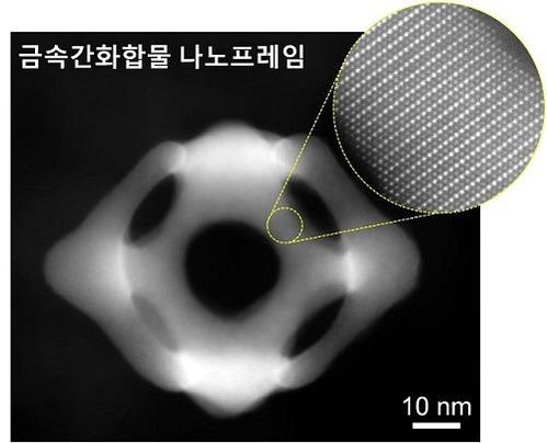 연구팀은 나노미터(nm·10억분의 1미터) 크기의 구조체(프레임)와 금속간화합물을 융합한 새로운 촉매를 선보였다. 가운데가 뚫린 형태의 나노 구조체가 뼈대 역할을 함으로써 금속 입자들은 서로 뭉치지 않고 고정될 수 있다.