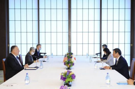 6일 NHK방송 등에 따르면 아시아판 나토로 불리는 '쿼드' 논의차 일본을 방문한 폼페이오 장관은 이날 도쿄 외무성 공관에서 모테기 도시미쓰 일본 외무상을 만나 1시간 가량 오찬 회담을 진행하며 이 같이 언급했다. 스가 정권 출범 이후 미·일 외무장관이 직접 만난 건 이번이 처음이다.