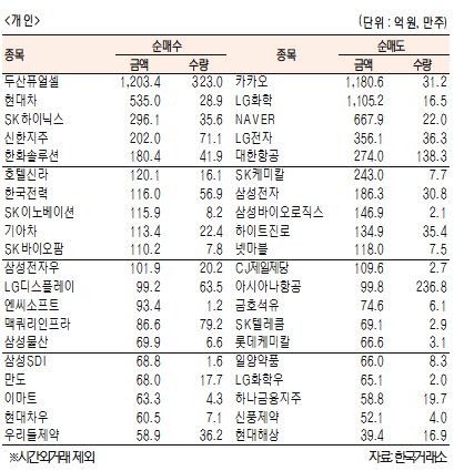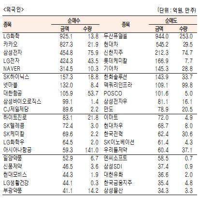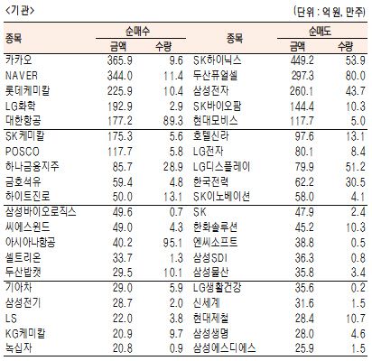 [표]유가증권 기관·외국인·개인 순매수·도 상위종목(10월 6일)