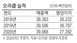 올해 오라클 영업이익은 172억8400만달러(약 20조800억원)로 전년 대비 28%가량 증가할 것으로 증권가는 내다보고 있다. 코로나19 확산 이후 오라클 클라우드 인프라스트럭처 매출은 2분기 연속 2배 이상 증가한 것으로 나타났다.