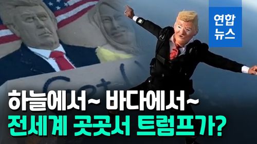 (서울=연합뉴스) 신종 코로나바이러스 감염증(코로나19)에 걸린 도널드 트럼프 미국 대통령을 소재로 세계 곳곳에서 다양한 퍼포먼스가 펼쳐지고 있습니다.