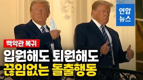 (서울=연합뉴스) 코로나19에 걸린 도널드 트럼프 미국 대통령이 입원 3일 만인 5일(현지시간) 병원을 나와 백악관에 복귀했지만 퇴원을 놓고도 논란에 휩싸였습니다.