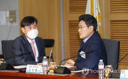 대화하는 하태경-오신환 |