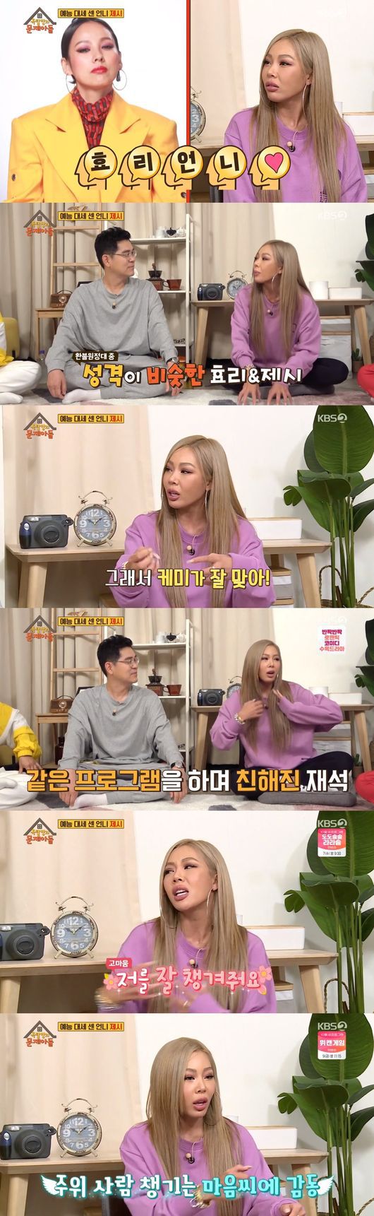 이어 제시는 주위의 똑똑한 사람으로 유재석을 언급했다. 제시는 "오빠가 날 너무 잘 챙겨준다. 녹화 끝나고 뭐 실수한 건 없는지 문자를 보낸다. 그럼 오빠는 그런 거 걱정하지 말라고 한다"라고 말해 눈길을 끌었다.