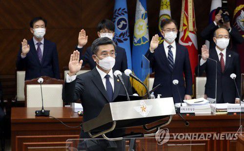 선서하는 서욱 국방부 장관 |