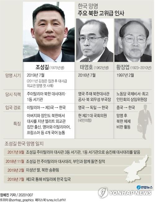 조 전 대사대리의 한국행은 1997년 황장엽 전 노동당 국제비서 이후 20여년 만의 북한 최고위급 인사의 한국 망명이라는 점에서 주목된다.
