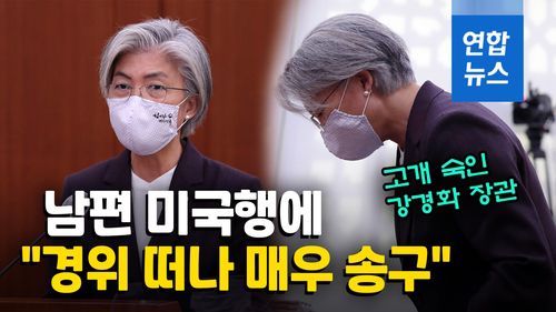 (서울=연합뉴스) 국회 외교통일위원회의 7일 국정감사에 출석한 강경화 외교부 장관은 논란이 되고 있는 남편 이일병 연세대 명예교수의 미국행에 대해 "경위를 떠나 매우 송구스럽다"며 사과했습니다.