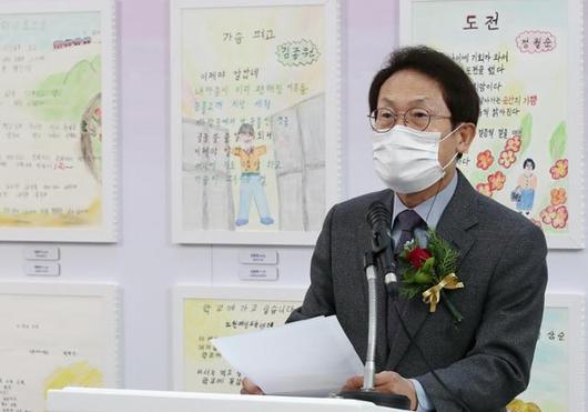 7일 오후 서울 서대문구 서울시교육청에서 열린 '2020 서울시교육청 학력인정 문해 교육 10주년 기념식'에서 조희연 서울시교육감이 환영사를 하고 있다. 연합뉴스 |