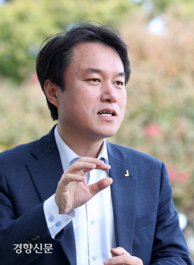 배진교 정의당 당대표 후보가 7일 국회에서 경향신문과 인터뷰하고 있다. 김창길 기자 |