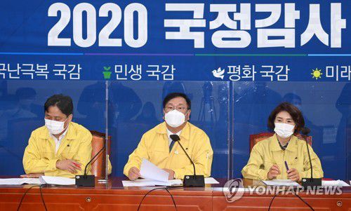 국감대책회의 주재하는 민주당 김태년 원내대표 |