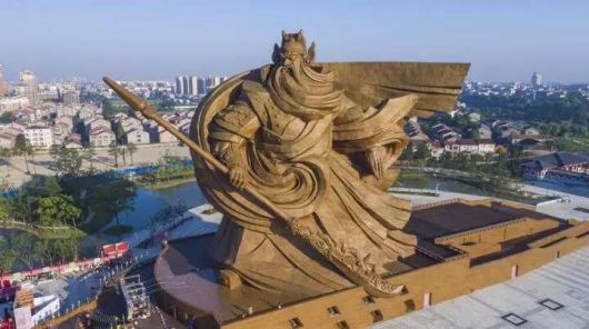 징저우관광투자개발그룹이 2016년 세운 이 조각은 “세계 최대 관우 조각상"으로 알려졌다. 관우가 든 청룡언월도의 길이만 70m 무게 136t에 달한다. 중국 매체인 상요우신문은 “관우를 문화 관광 자원으로 내세웠지만 4년간 관광객들의 외면을 받았고 지난 7월에는 무게 1200여t에 달하는 관우 조각 하단부가 내려앉고 있다는 보도도 있었다”고 전했다.