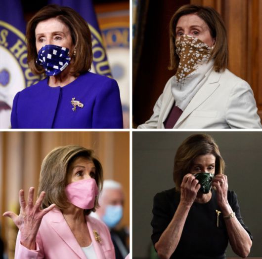 아래는 펠로시 의장의 ‘마스크 패션’을 뉴욕타임스가 분석하면서 모아놓은 사진들입니다. 옷 색깔에 맞춰 눈길 끄는 마스크들을 하고 나왔네요.