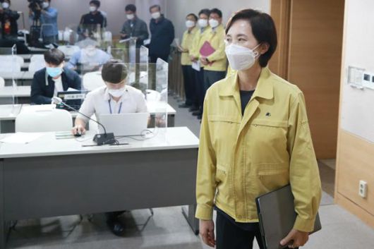 유은혜 사회부총리 겸 교육부 장관이 11일 오후 서울 종로구 정부서울청사에서 추석 연휴 특별 방역기간 이후 학사운영 방안 발표를 위해 입장하고 있다. 뉴스1 |