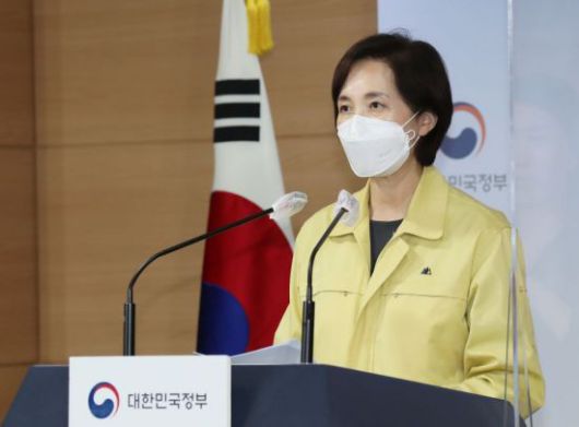 유은혜 부총리 겸 교육부장관은 11일 정부서울청사에서 추석 연휴 특별 방역 기간 이후 학사운영 방안에 대해 발표하고 있다. 사회적 거리두기 1단계 완화에 따라 전국 유치원 및 초중고등학교 등교 인원은 3분의 2로 조정된다. (제공=교육부) |