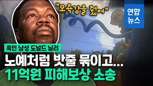 (서울=연합뉴스) 흑인 노예를 연상시키는 모습으로 밧줄에 묶여 미국 경찰서로 끌려갔던 한 흑인 남성이 경찰을 상대로 거액의 손해배상 소송을 제기했습니다.