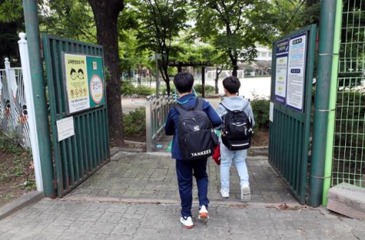 수도권 지역 유초중고 학생들의 등교가 재개된 지난 9월 21일 오전 인천 남동구 한 초등학교에서 학생들이 등교를 하고 있다. 연합뉴스 |