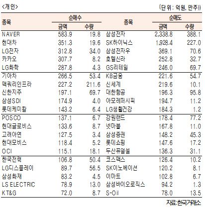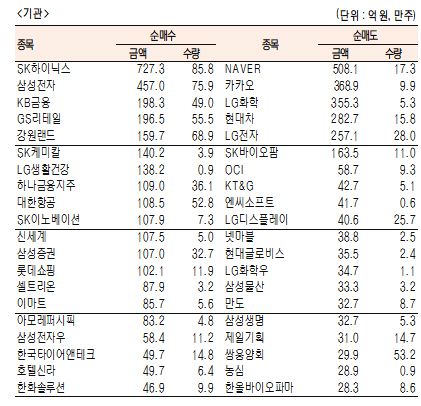 [표]유가증권 기관·외국인·개인 순매수·도 상위종목(10월 12일-최종치)