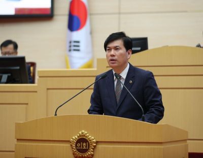 이혁제 도의원이 제347회 임시회에서 ‘전라남도교육청 교육재난지원금 지급 조례안’을 대표 발의하고 있다. 사진=전남도의회 제공 |