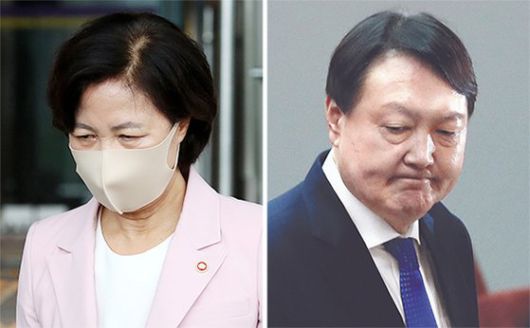 추미애 법무부 장관(왼쪽)과 윤석열 검찰총장. 뉴스1·연합뉴스 |