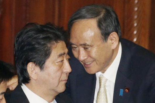 지난 2016년 아베 정권 당시, 아베 총리와 스가 관방장관. AP뉴시스 |