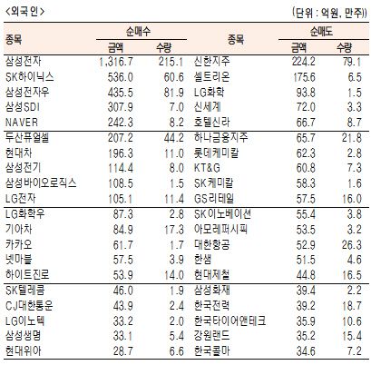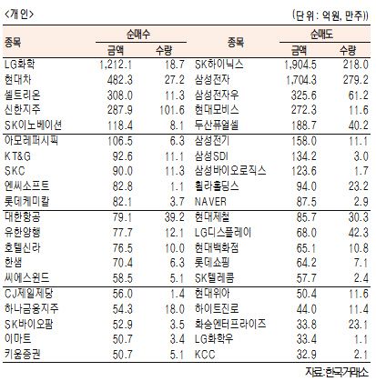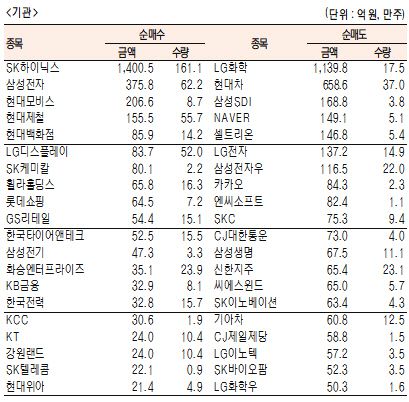 [표]유가증권 기관·외국인·개인 순매수·도 상위종목(10월 13일-최종치)
