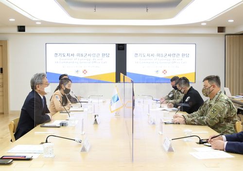 이 지사는 이날 벌레슨 사령관에게 한국인의 진취성과 역동성을 상징하는 '고구려 수렵도'를 새긴 도자기를 선물하며 경기도와 주한미군 간 우호 협력을 강화하자는 뜻을 전했다.