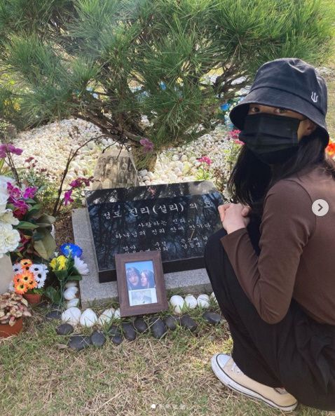 김선아는 14일 자신의 인스타그램에 “잠이 안 왔어. 너 보러 올 생각에”라는 글과 함께 설리의 묘소 앞에서 찍은 사진을 게재했다.