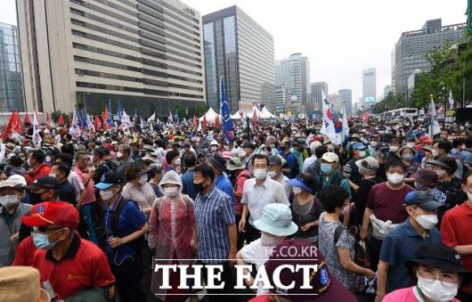 청와대는 14일 광복절 집회를 허가한 판사를 해임해달라는 국민청원에 대해 "헌법재판소의 고유 권한에 해당해 답변이 어렵다"며 양해를 구했다. 사진은 지난 8월 15일 서울 광화문 광장 일대에서 벌어진 집회 모습. /남용희 기자 |