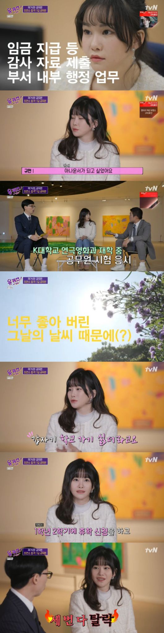 14일 방송된 tvN '유 퀴즈 온 더 블럭'에서는 '공무원' 특집으로 꾸며진 가운데 7급 공무원 최연소 합격자 김규현 주무관의 인터뷰가 전파를 탔다.